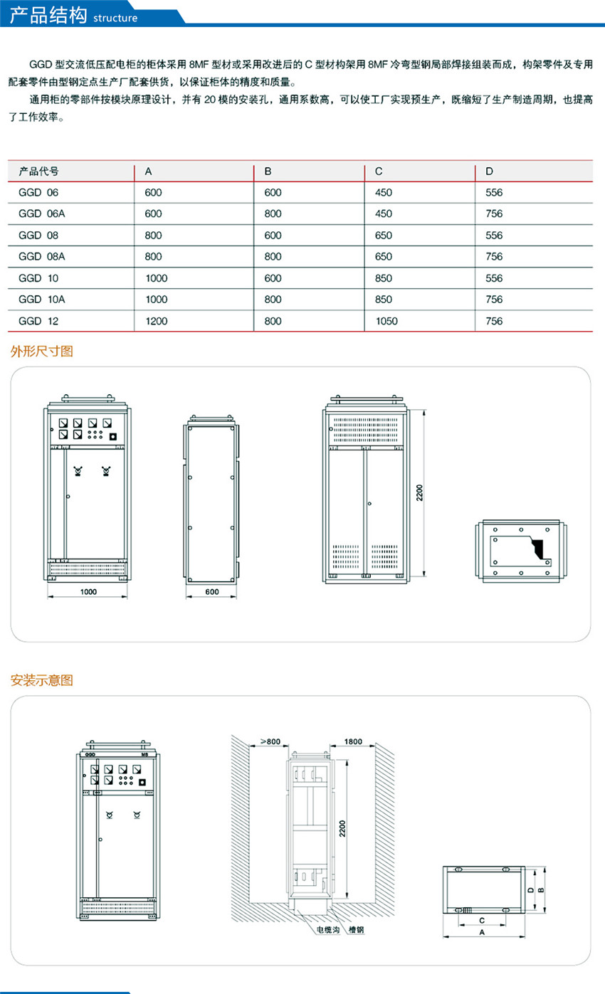 GGD型交流低壓配電柜是根據能源部主管上級,廣大電力用戶及設計部門的要求,本著安全、經濟、合理、可靠的原則設計的新型配電柜。產品具有分斷能力高,動熱穩定性好,電氣方案靈活、組合方便,系列性、實用性強,結構新穎、防護等級高等特點,可以作低壓成套開關設備的更新換代產品使用。并且廣泛適用于發電廠、變電所、工業企業等電力用戶作為交流50HZ,額定工作電壓380V,額定電流至3150A 的配電系統中作為動力,照明及配電設備的電能轉換、分配與控制之用。該產品分斷能力高,額定短結構新穎等特點。該產品是我組裝式、固定面板開關柜的代表產品之一。